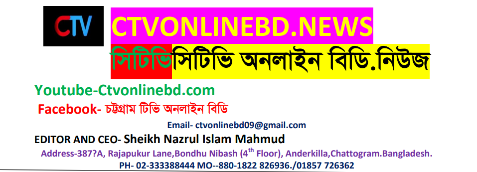 EDITOR AND CEO- Sheikh Nazrul Islam Mahmud Email- ctvonlinebd09@gmail.com Address-387?A, Rajapukur Lane,Bondhu Nibash (4th Floor), Anderkilla,Chattogram.Bangladesh. PH- 02-333388444 MO--880-1822 826936./01857 726362